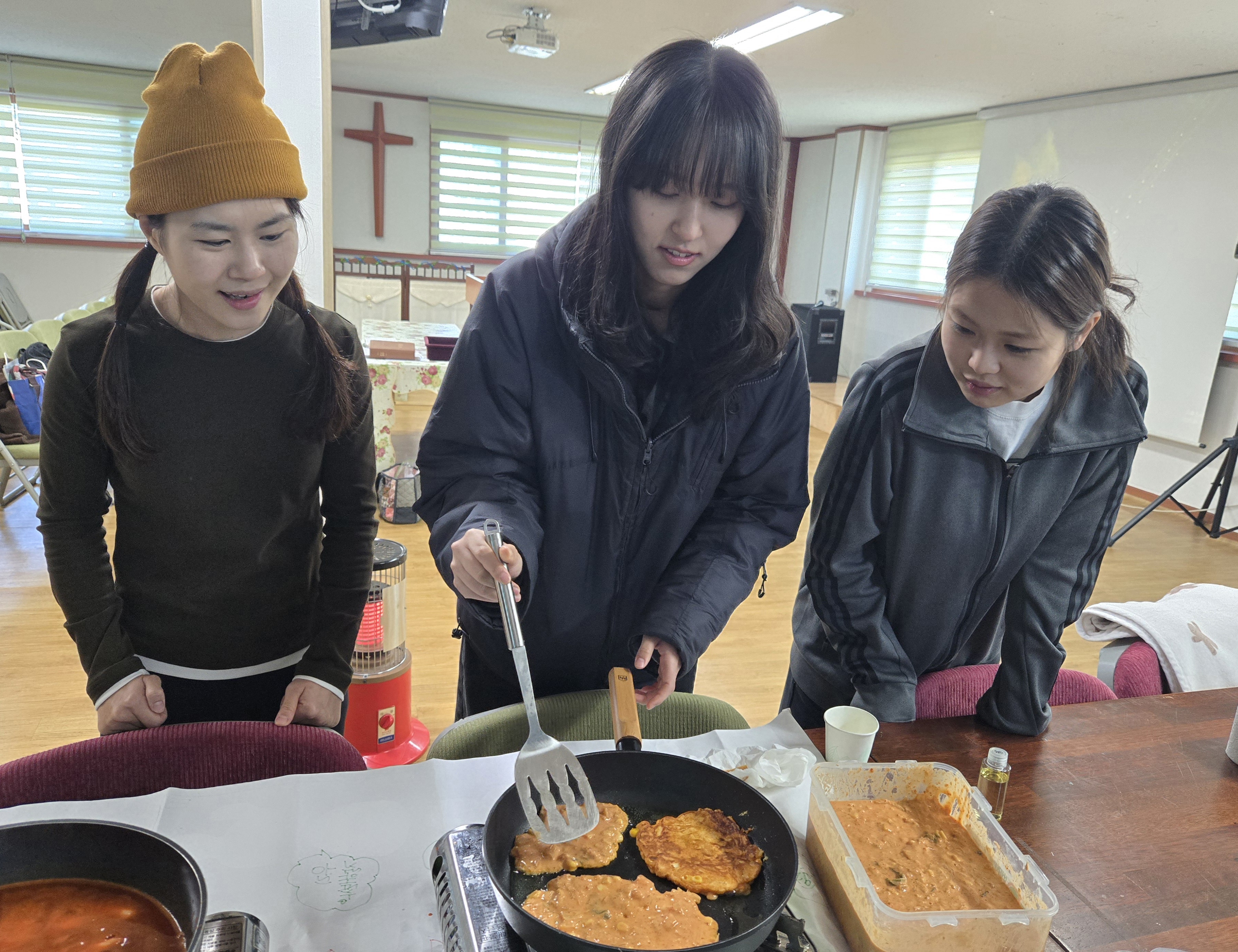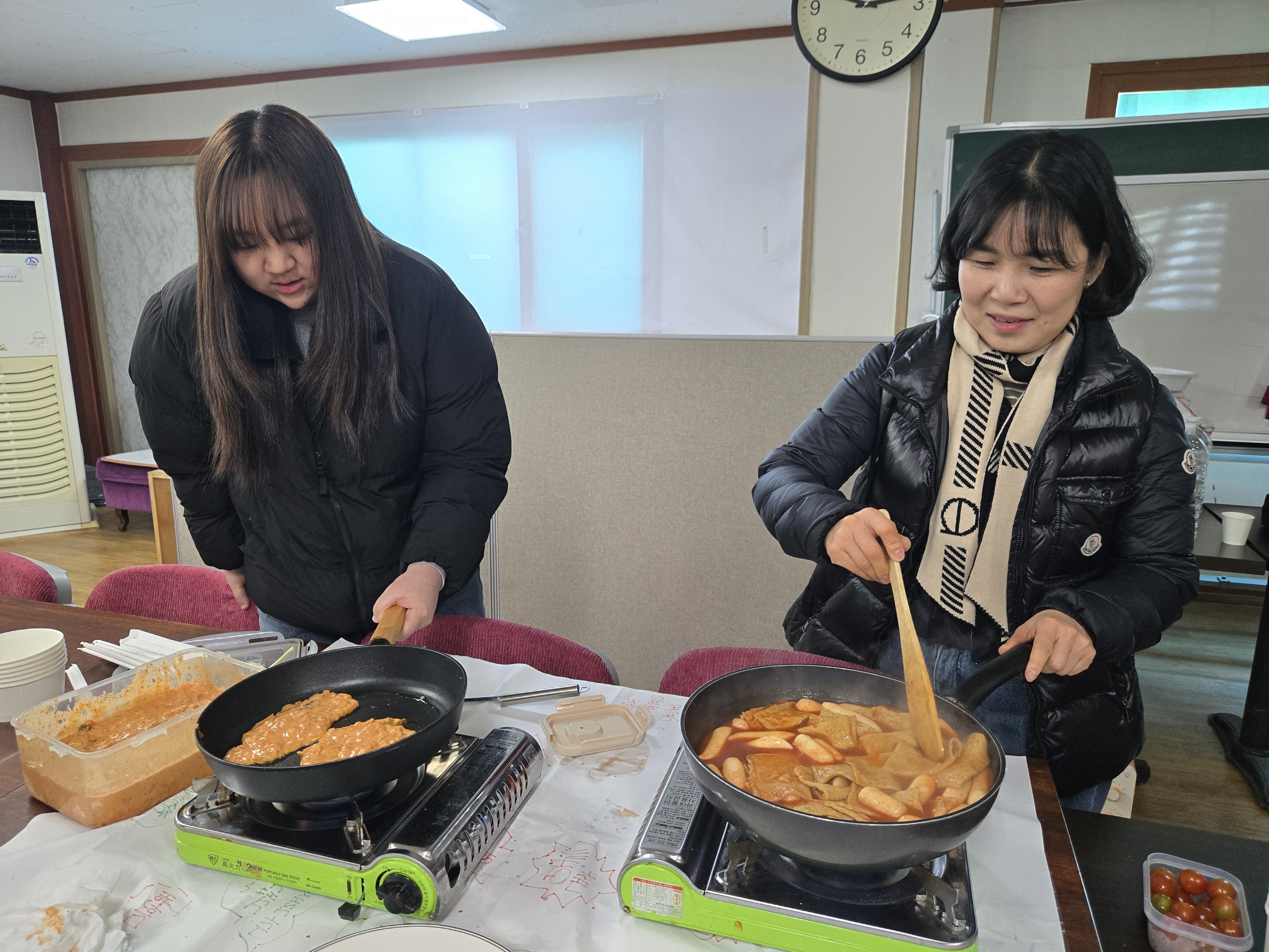 부침개와 떡볶이를 해 먹으며 서로 응원하고 격려하는 시간을 가졌어요.