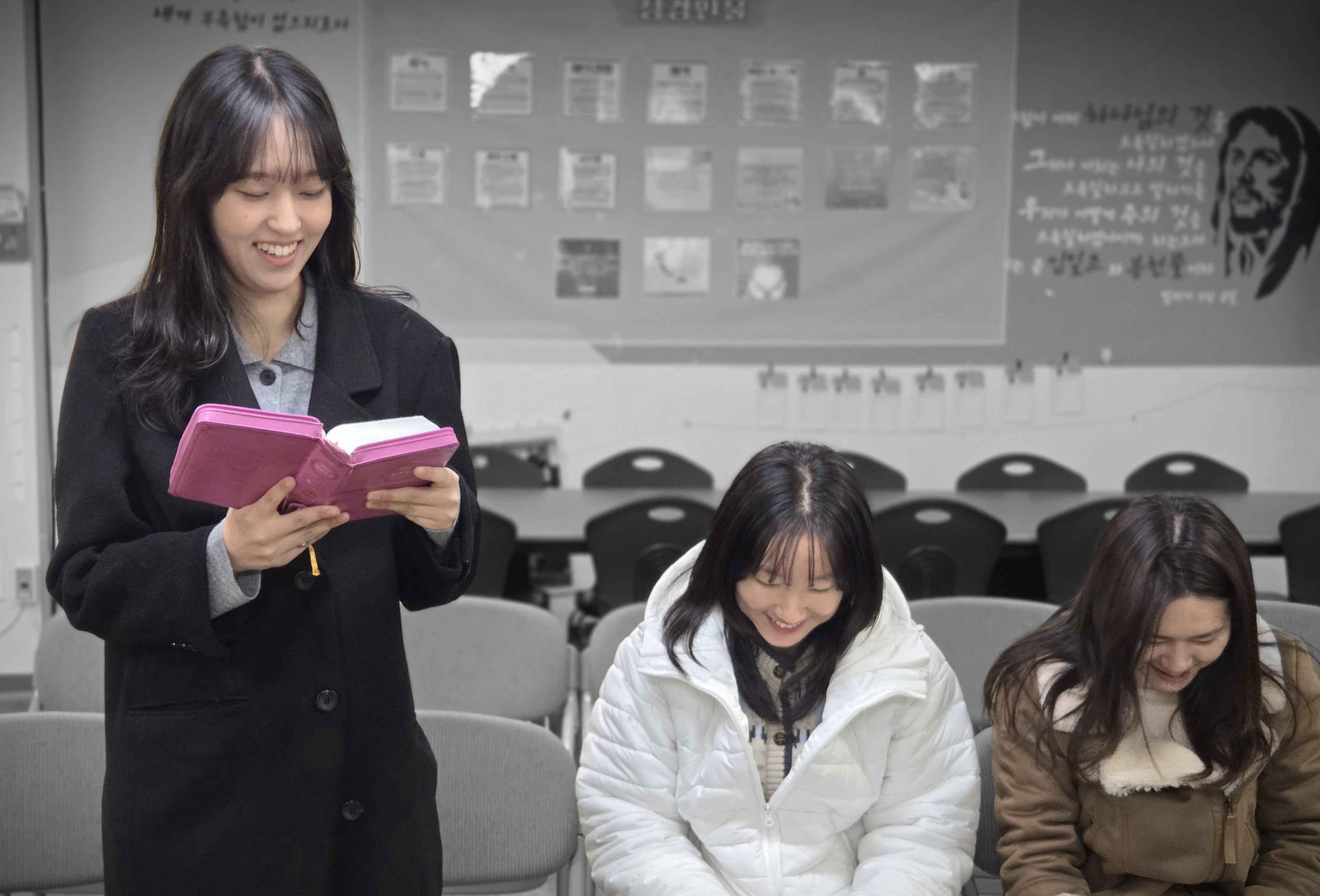 채연 가은, 도현 청년이 함께 예배를 드렸어요.