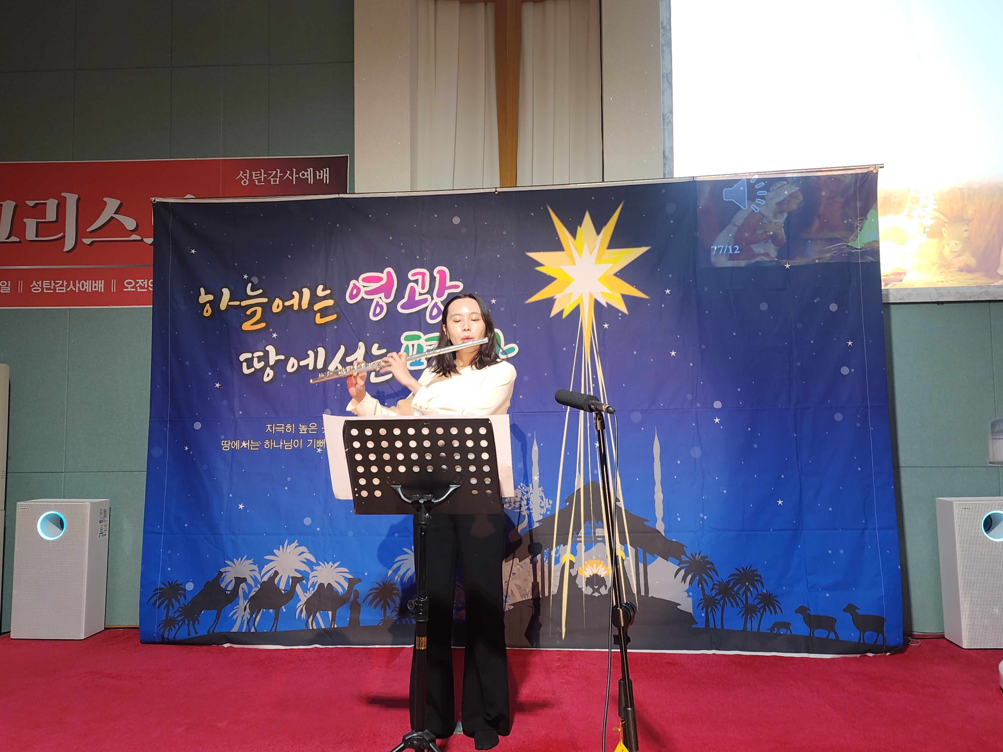 풀룻연주는 권하영집사님, 인사말은 강리호 어린이, 영혼의 찬양은 청소년부,