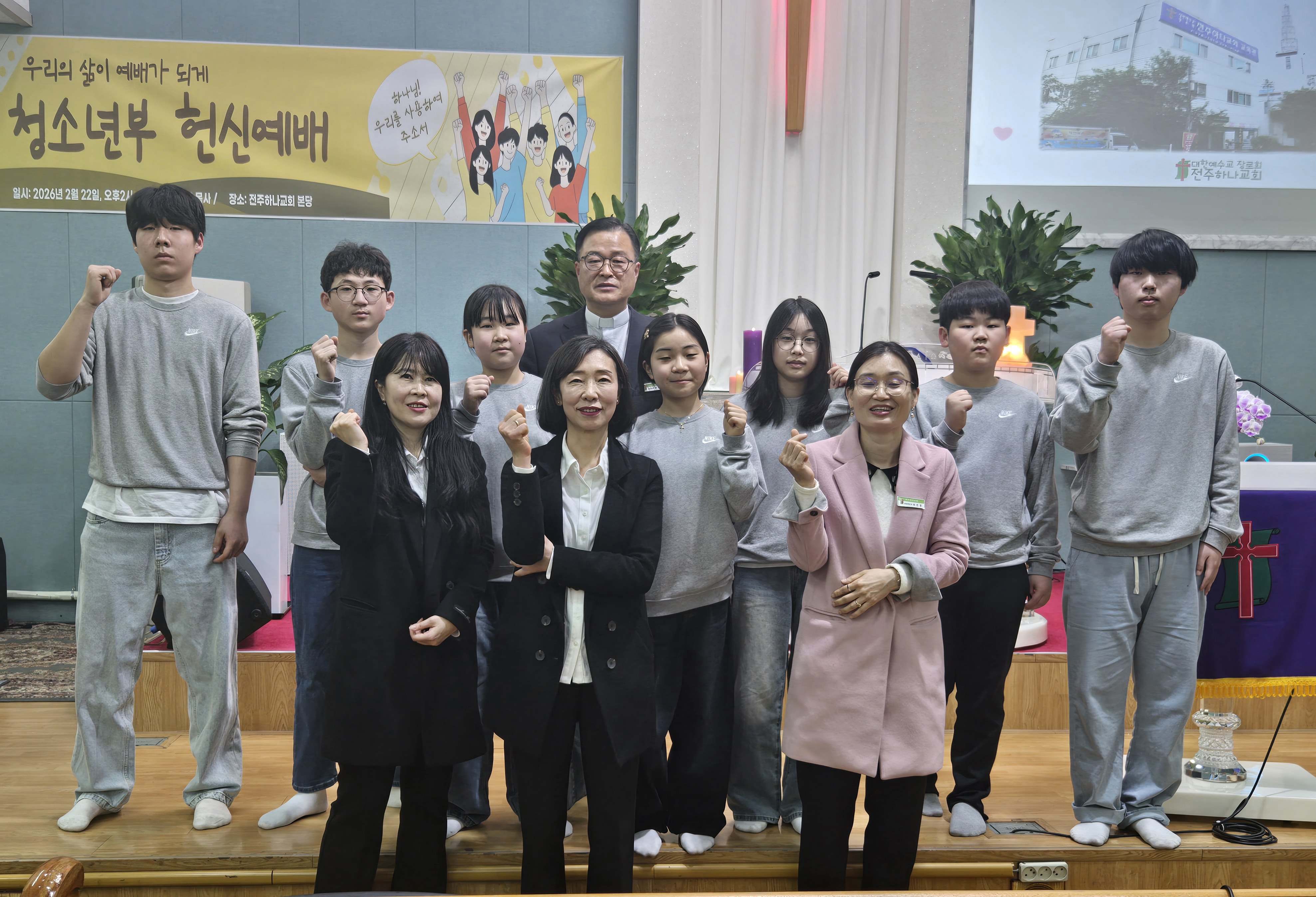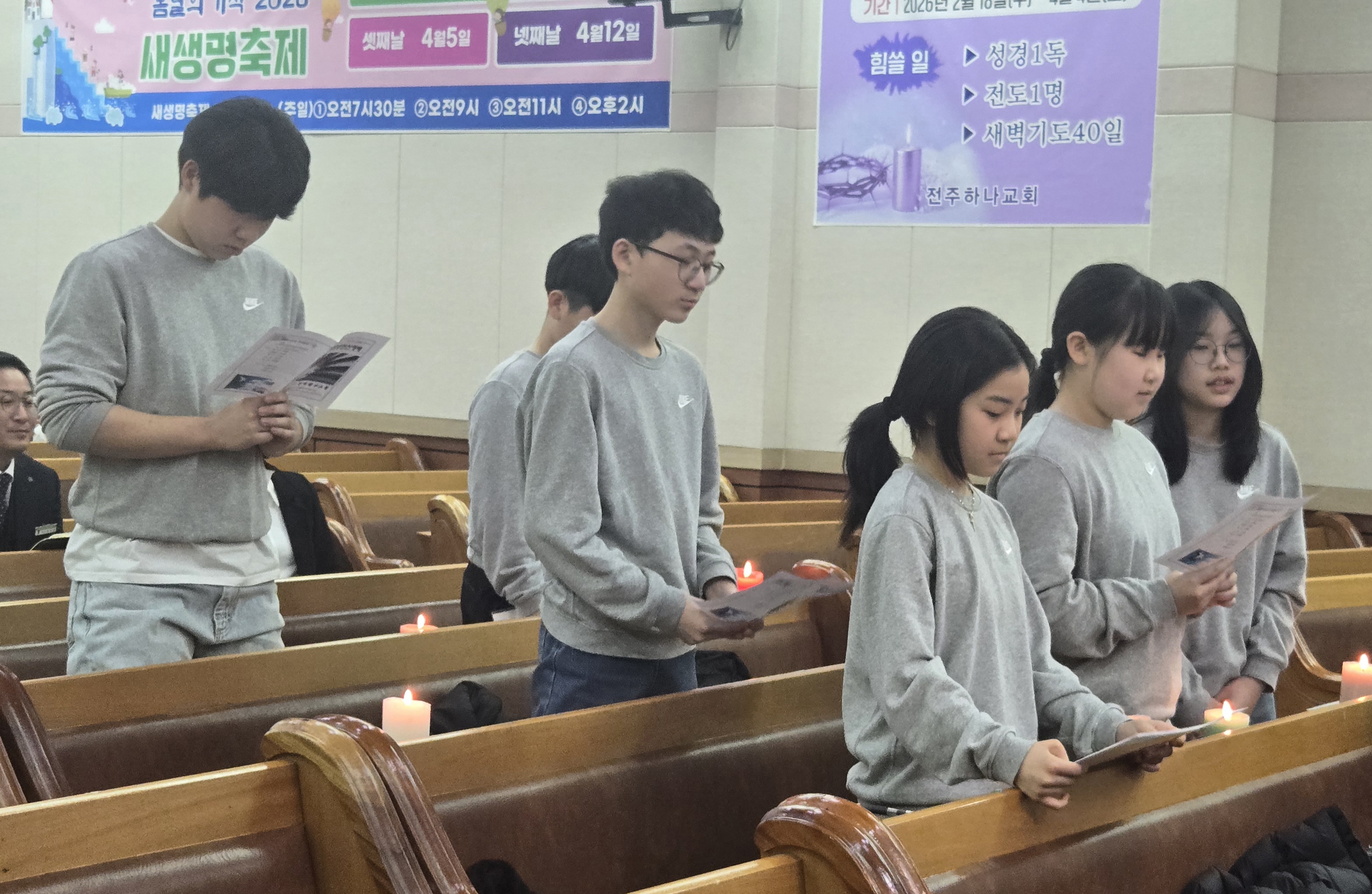 청소년부 교사들과 친구들이 하나님 앞에 헌신을 다짐하며