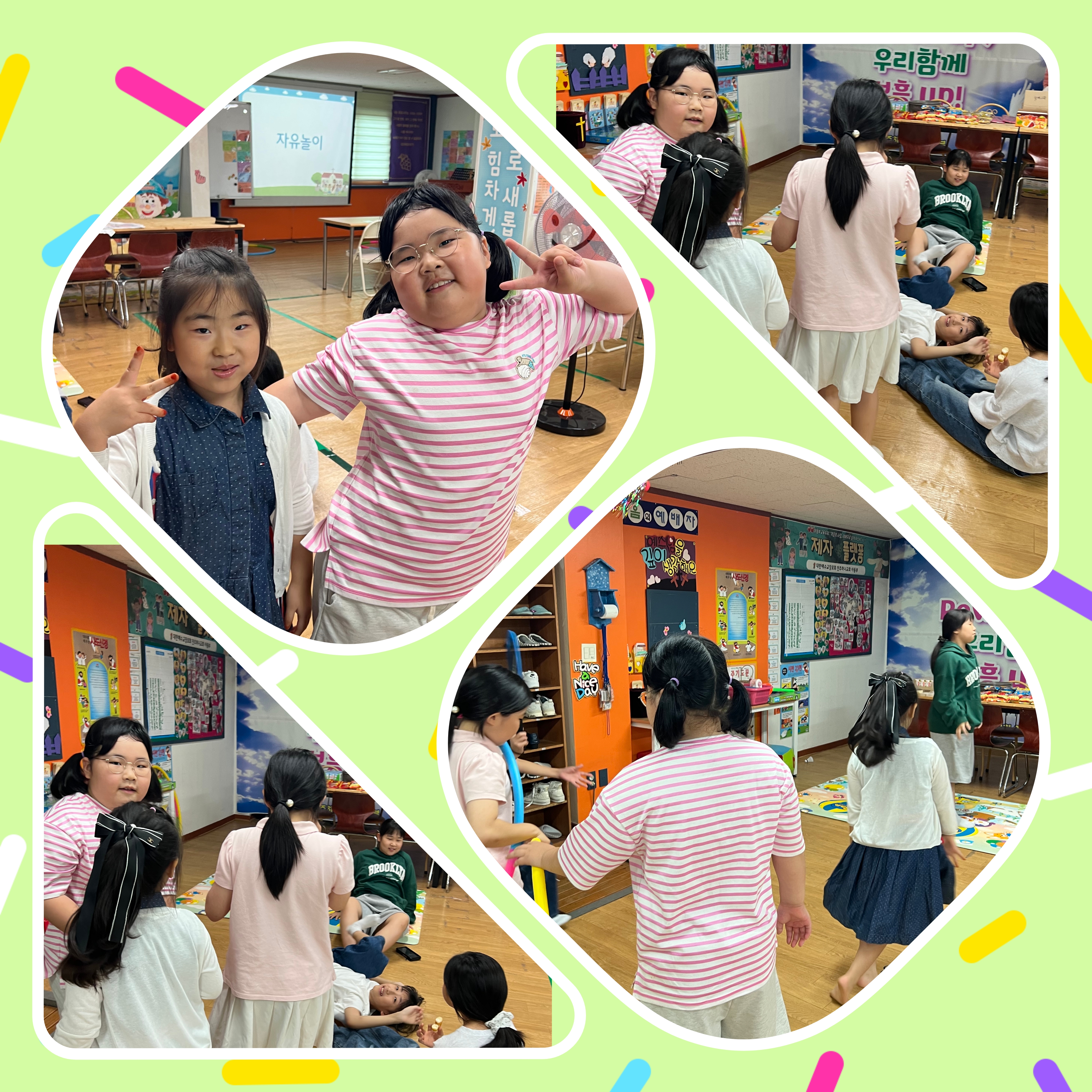 오늘 예배전 활동은 맛있는 간식을 먹고 자유놀이를 했습니다