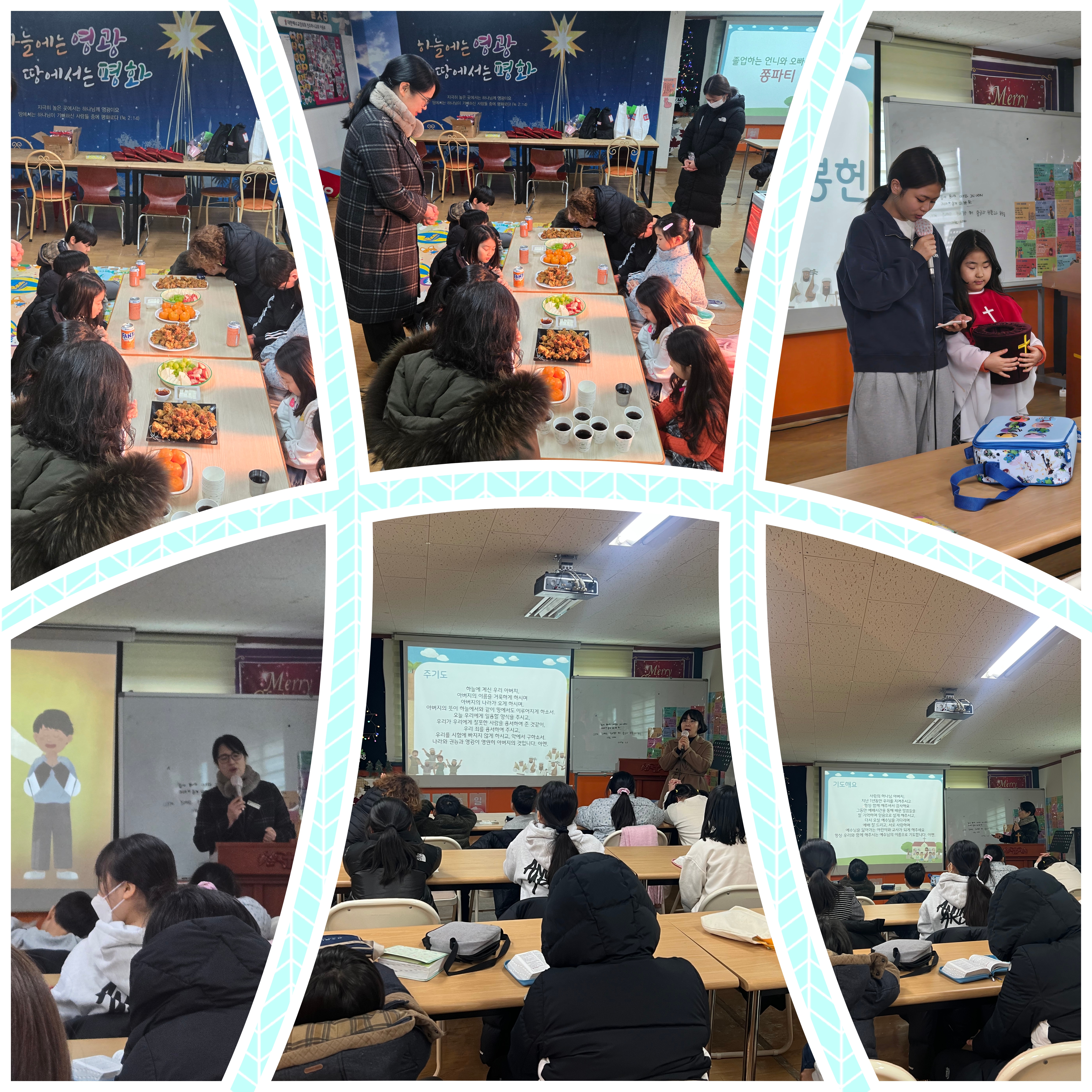 오늘은 예배전 활동으로 '새해소원기도쓰기'를 하고, 6학년 졸업생들을 위한 쫑파티를 했습니다