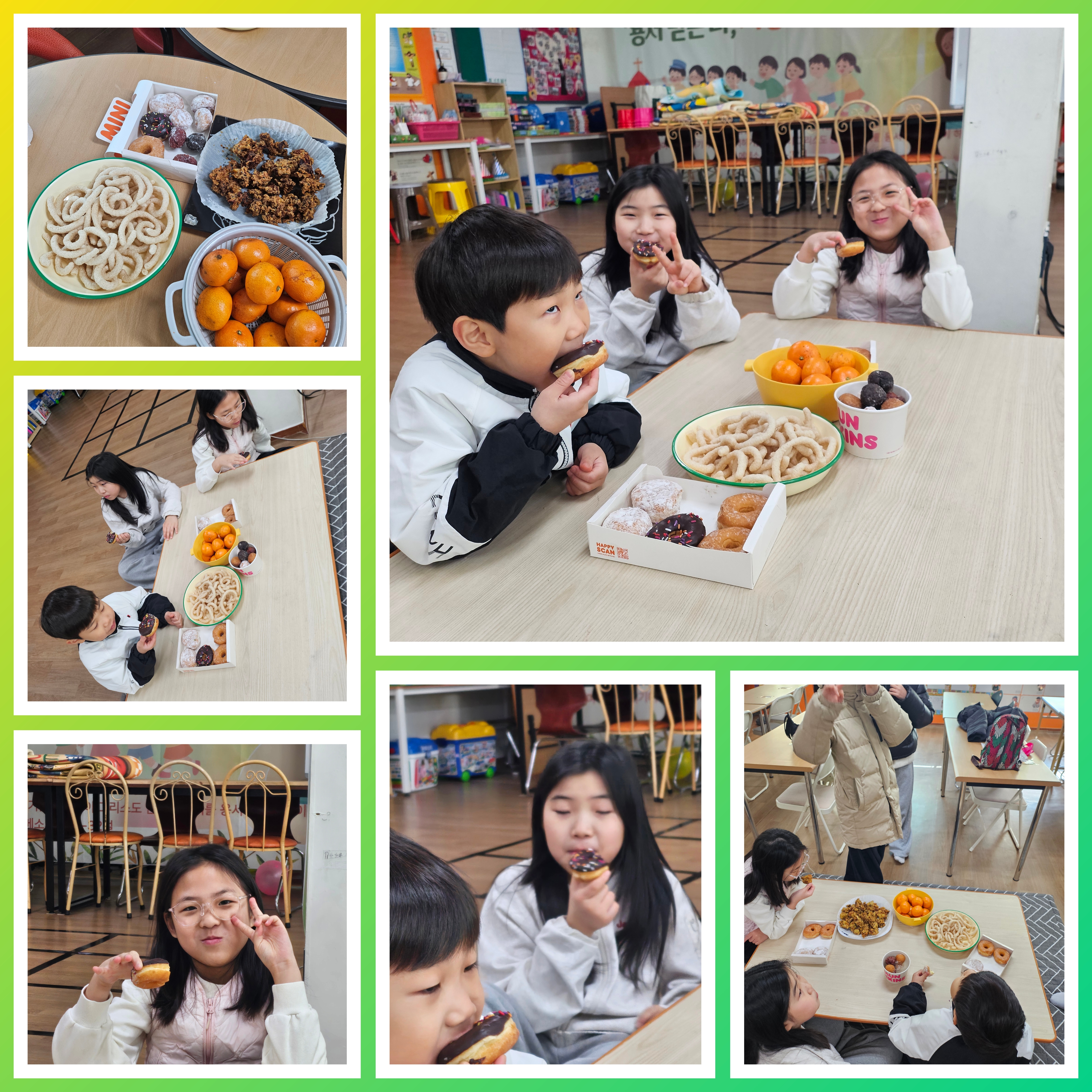오늘은 예배 전 활동으로 맛있는 간식을 먹고, 신나는 레크레이션을 했습니다